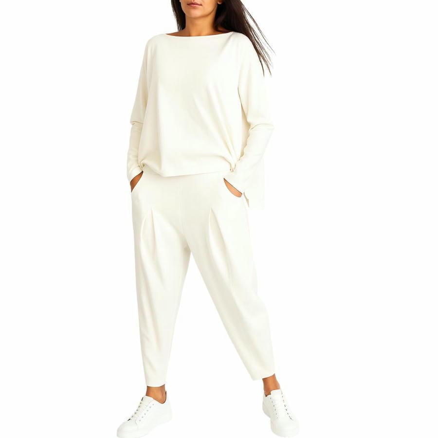 Women’s Two-Piece Set with Wide-Neck Top and Tapered Trousers